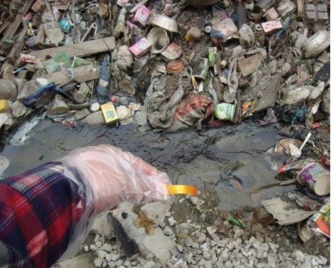 浙江水環境調查組調查發現,在該廠區東側圍墻外,有多根白色PVC管,其中有一根一端埋在地下,入土部分用水泥槽圈圍,水泥槽腐蝕嚴重,槽內有強酸性水囤積并有流動跡象,但不見污水滿溢。
