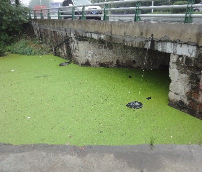 在當(dāng)?shù)卮髩晤^村村民的帶領(lǐng)下,記者找到了路家浜,這是一個斷頭浜,東頭連著永安河,在路家橋下還剩著幾根筑壩的鋼管,整個河面上漂浮著綠萍,只能依稀看到河水的顏色有些微黑。而在路家橋東頭,河水要比斷頭浜一側(cè)要清亮些。