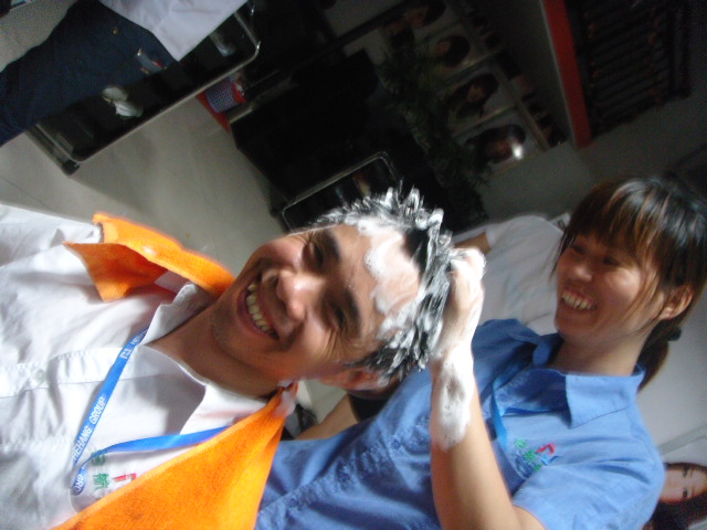 百善孝為先。這是化鎳線楊大姐第一次享受兒子的洗頭服務。